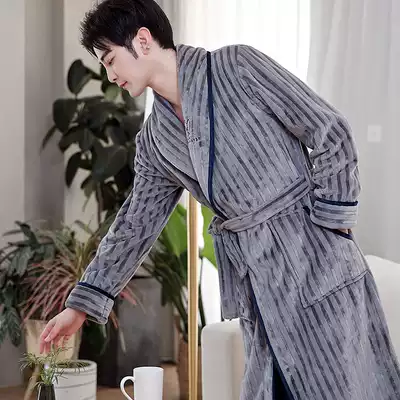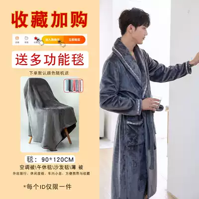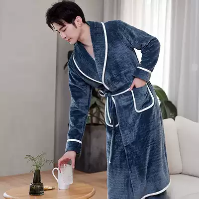 Pajamas men's bathrobe autumn and winter flannel thickened long winter plus velvet new robes men coral velvet winter robes