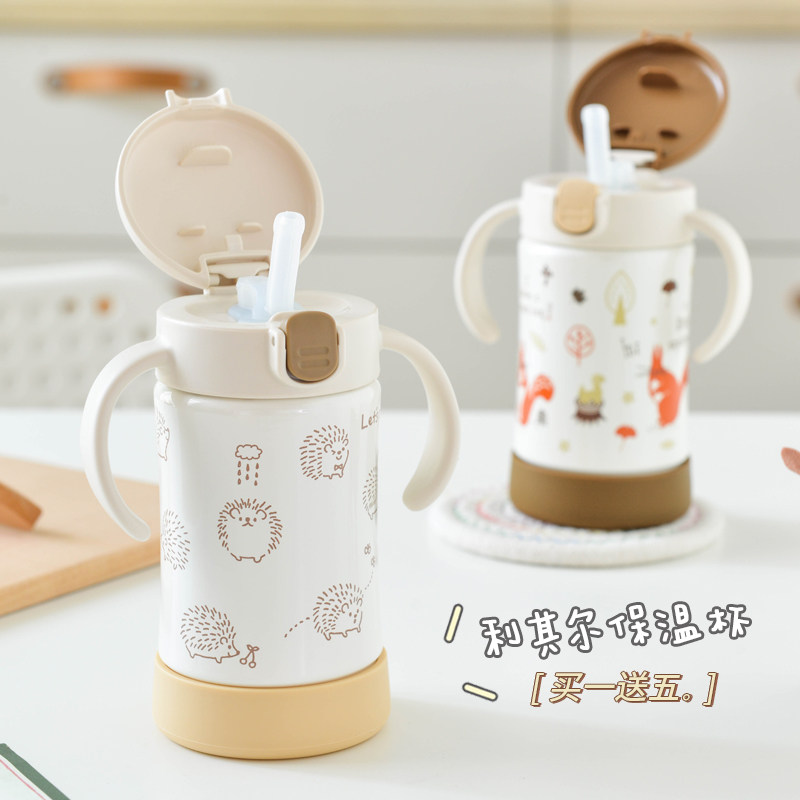 Japan's Richel baby and children's thermos cup with straw infants and young children out of the water cup baby straw cup portable anti-fall