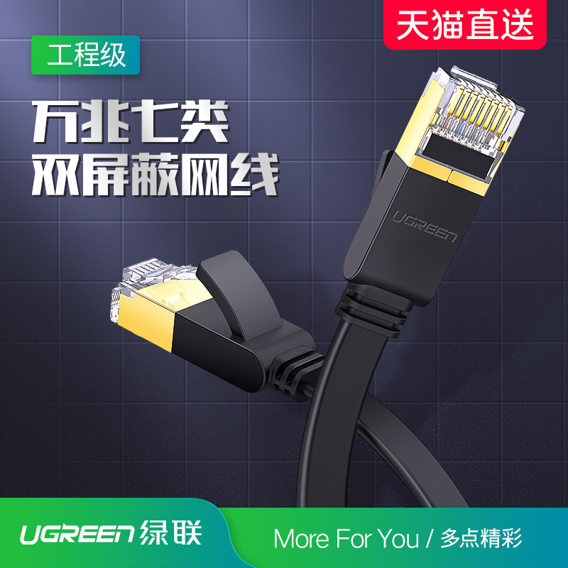 Green League Seven Type Flat Mesh Routes Pure Copper 10,000 trillion Home Outdoor cat7 Class Computer Broadband Connection High Speed Ultra 10 m
