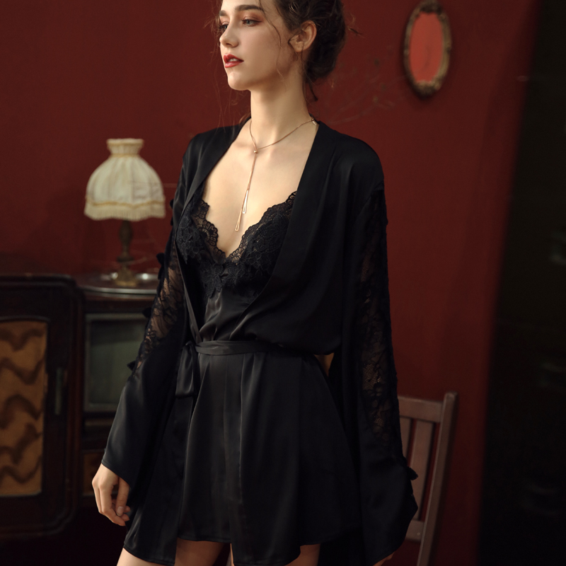 Mrs. Lemon sexy pajamas spring women water soluble flower perspective lace hollow temptation sexy suspender nightdress