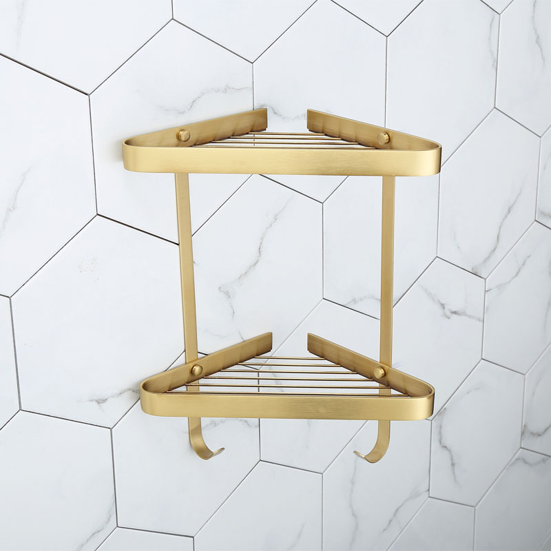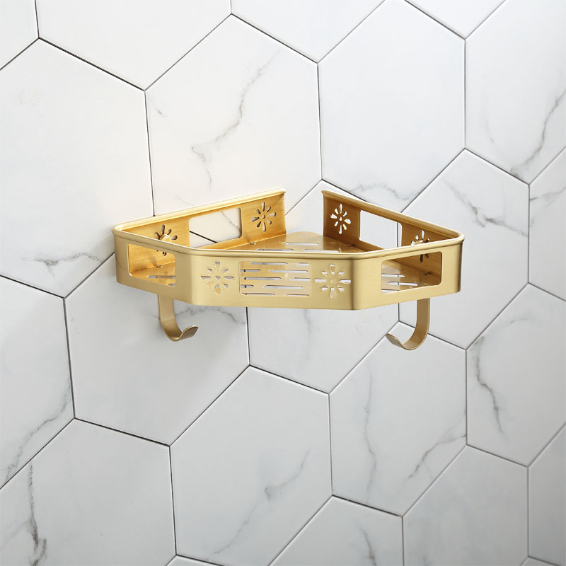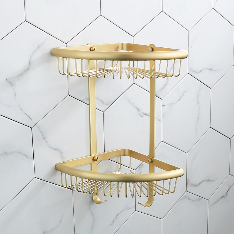 Total Copper Nordic Drawing Gold Bathroom Shelve Bathroom floor Bathroom Containing Wall-mounted Golden Brass Tripod Placed Basket