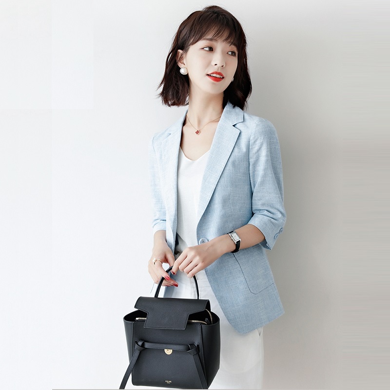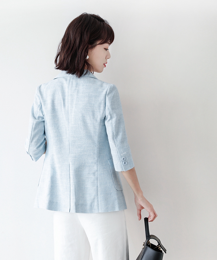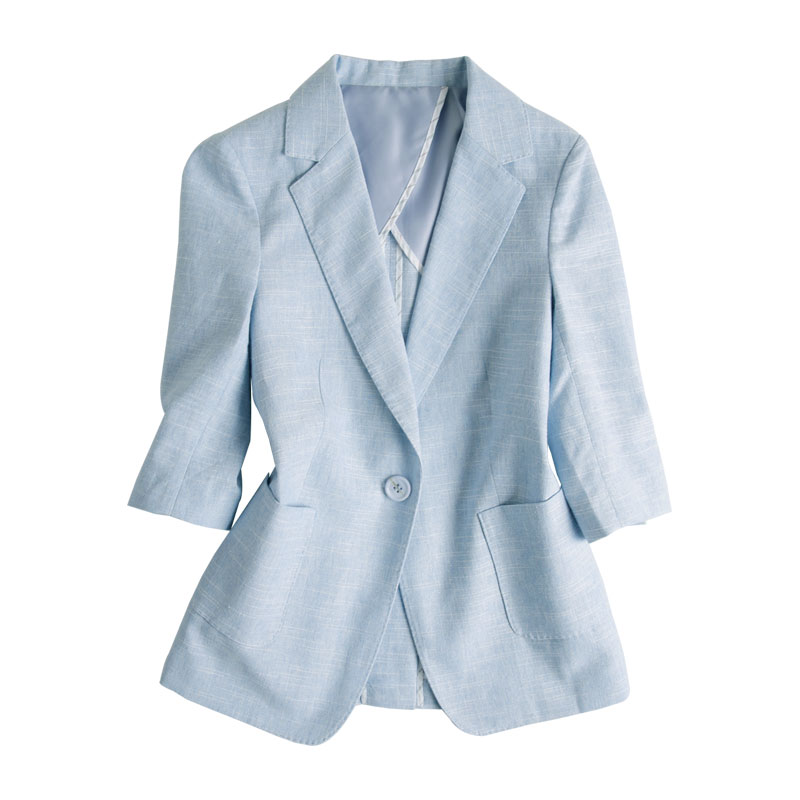 JOLIMENT BLUE linen BLAZER WOMEN's thin spring and summer seven-point sleeve cotton and linen slim-fit suit top