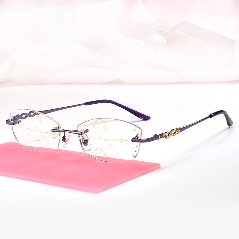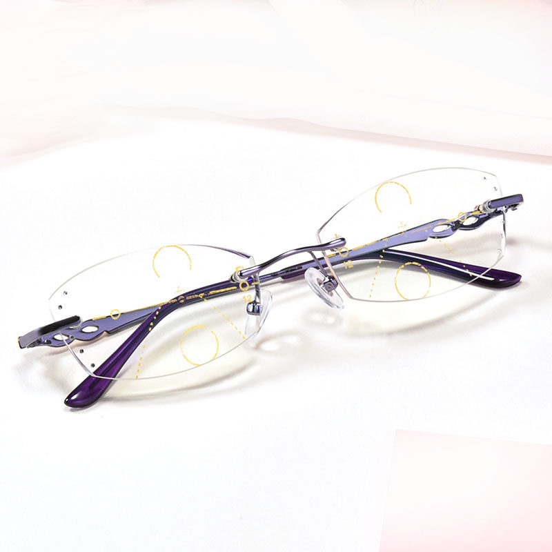 Cut edge No frame Progressive Multi Focus Old Flowers Glasses Woman NEAR AND NEAR-ZOOM OLD LIGHT FAR VIEW MIRROR FAR AWAY