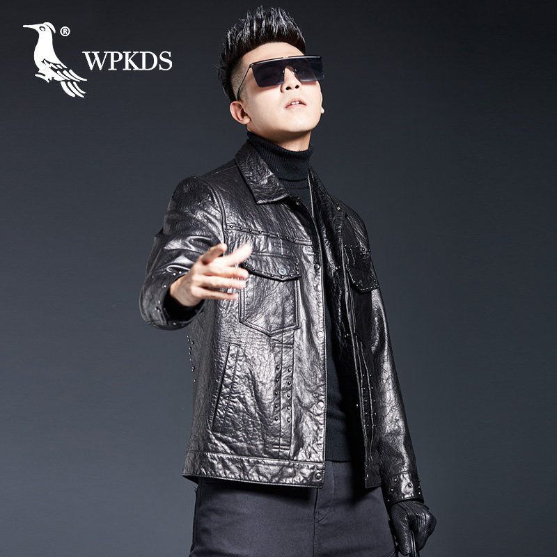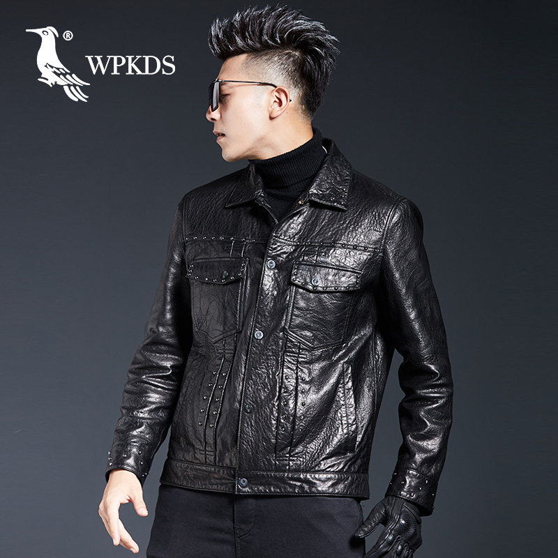 Henin rivet motorcycle leather jacket men's leather slim thin leather jacket men's youth sheep leather Harley coat tide