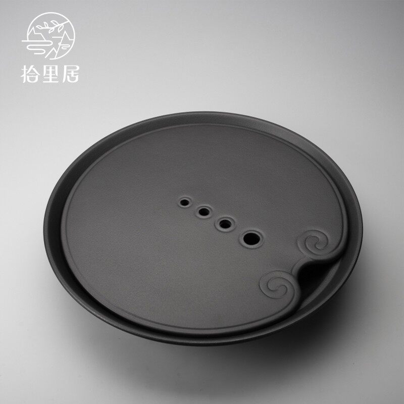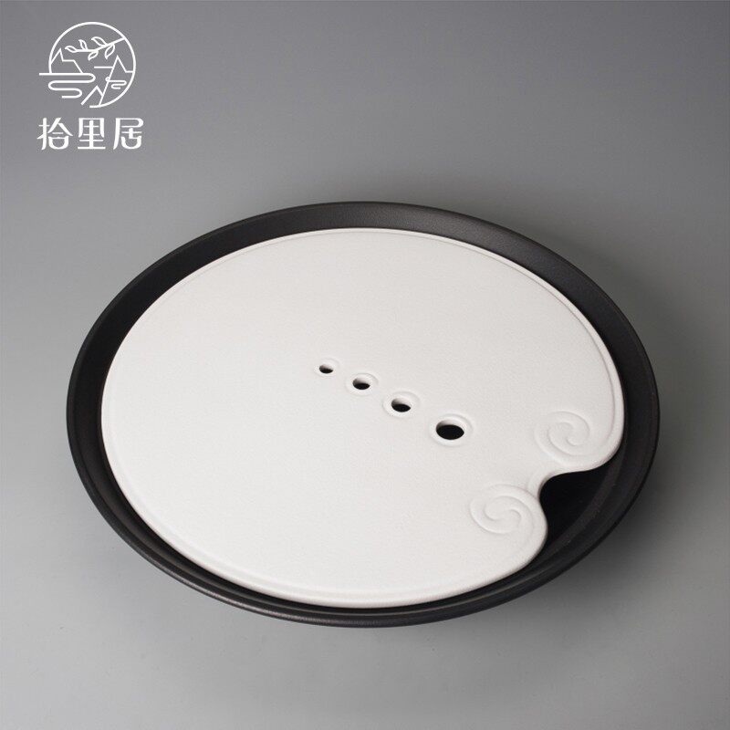 Shiliju tea tray drain pipe water storage ceramic household living room black and white simple wind round tea table tray