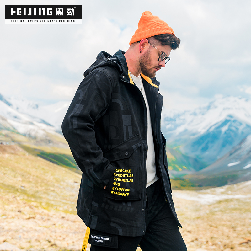 Black surge Tide Cards Plus Fat Increase Code Loose Camouflak Jacket 2019 Fall Chubby Chubby Men's Clothing Windbreakers Coats
