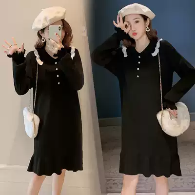Pregnant women autumn suit fashion 2021 New wear sweater knitted medium and long version autumn winter dress pregnant women dress