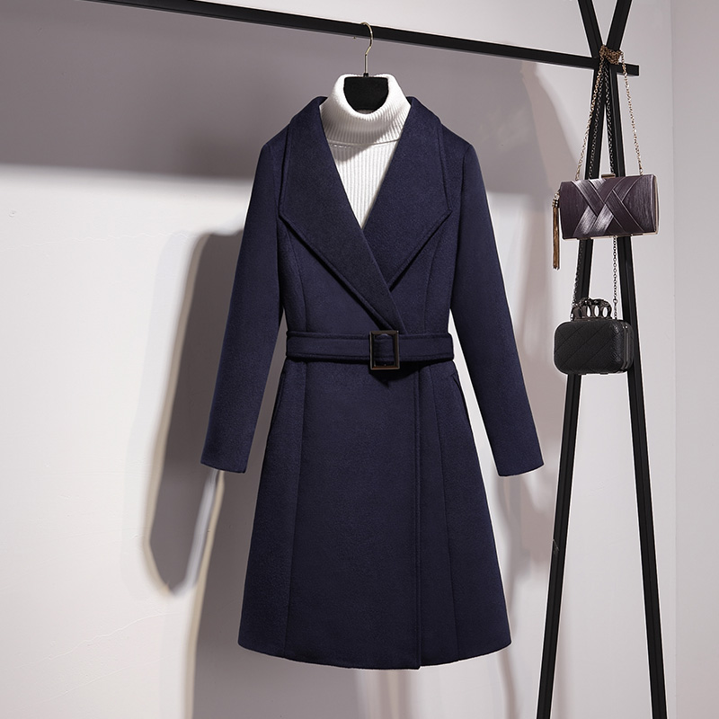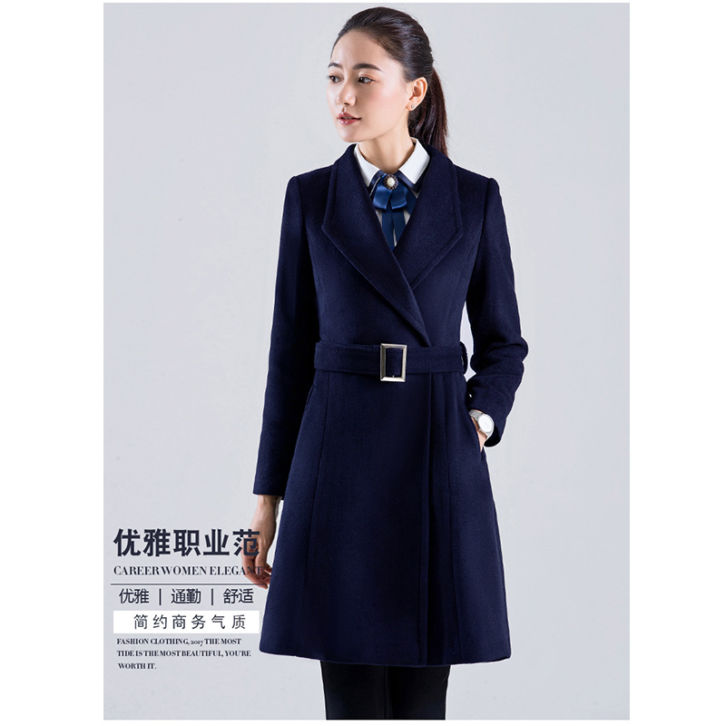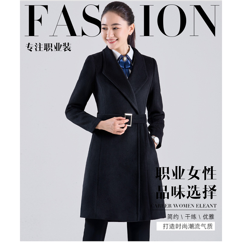 2021 new autumn and winter office clothes woolen coat women's long version of overalls woolen coat slim work