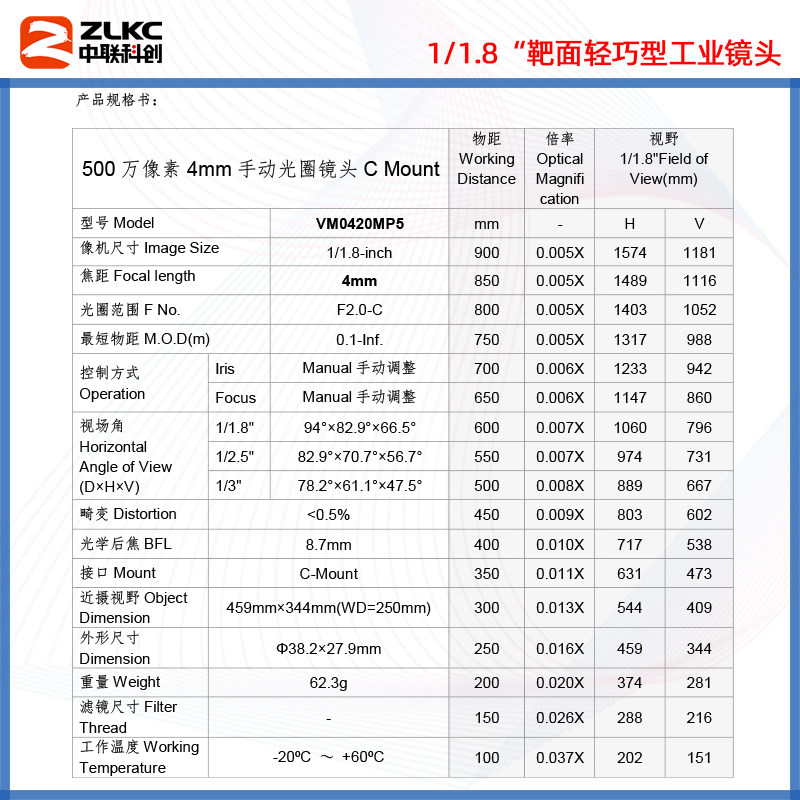 CCCC Industrial Lens 4mm Focus Wide - angle Monitoring Lens 5 million C Lens FA Low - distortion