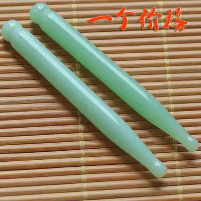 A pair of green glass eye scrapers A pair of green glass face sticks A pair of green glass mushroom heads A pair of green glass point pens A pair of green glass eye scrapers