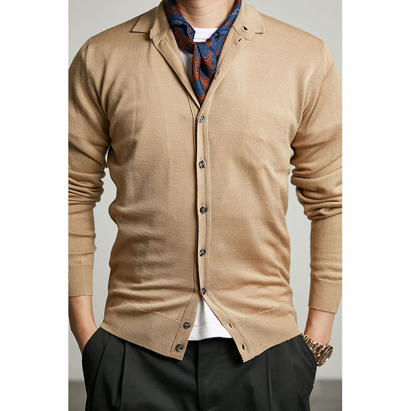 PARWISH lapel cardigan KHAKI