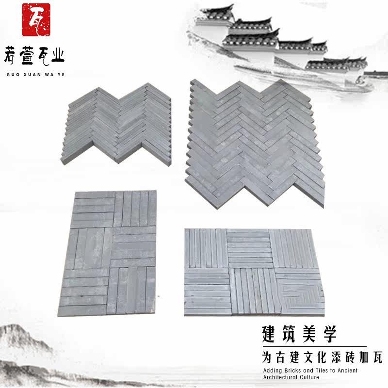 Green strip brick paving small strip brick Antique Chinese herringbone indoor and outdoor paving strip brick Decorative paving green brick strip