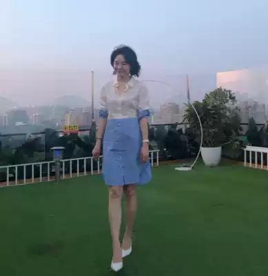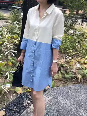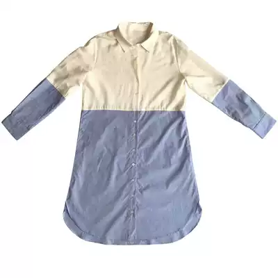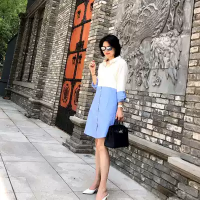 I am Capricorn blue and white stitching shirt skirt shirt dress women's medium long version of French fresh dress