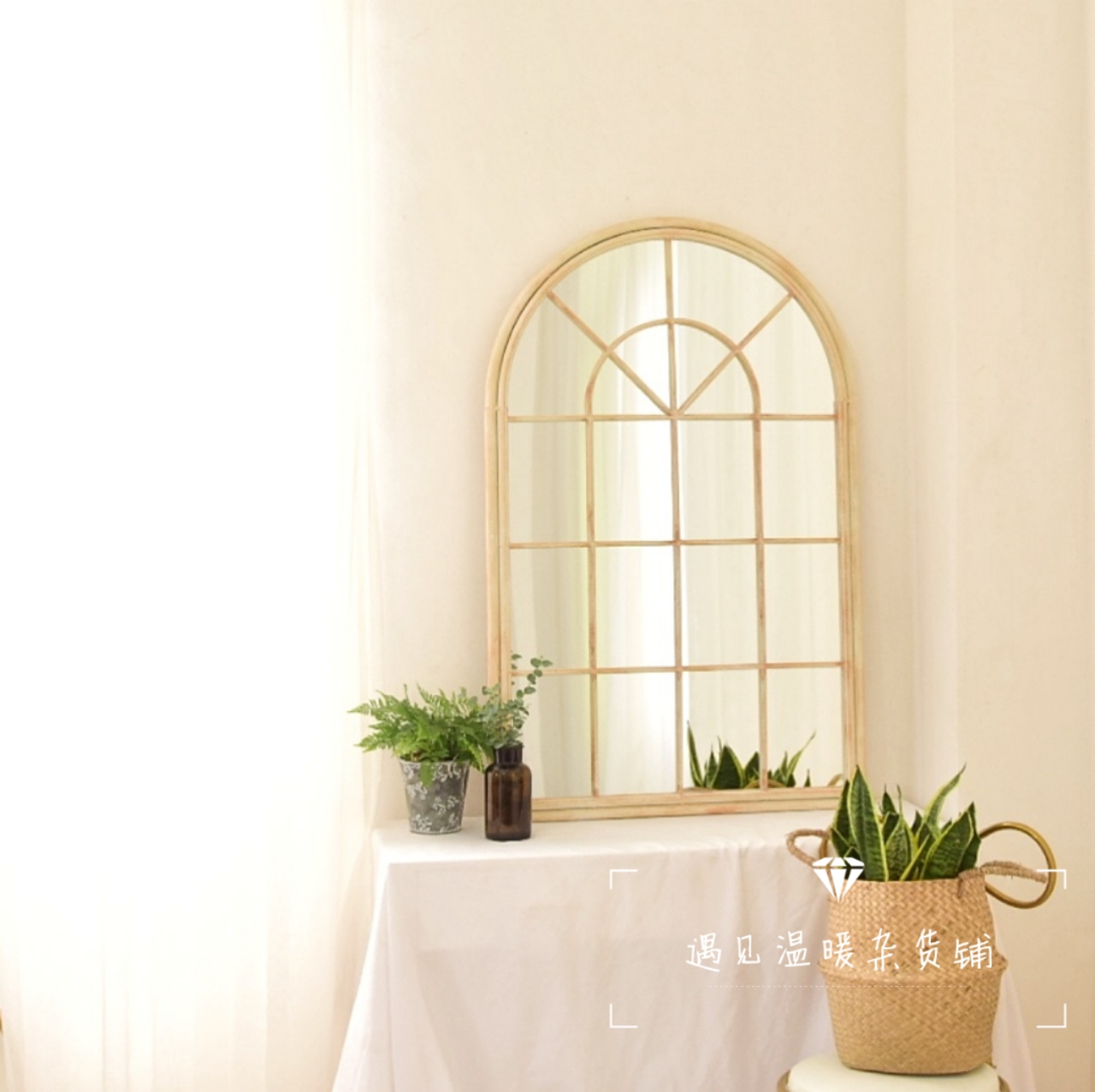 Other metal hand painted log mirror made of old carved and shaped gold leaf rattan antique folk splicing Roman column silver foil master design mortise and tenon