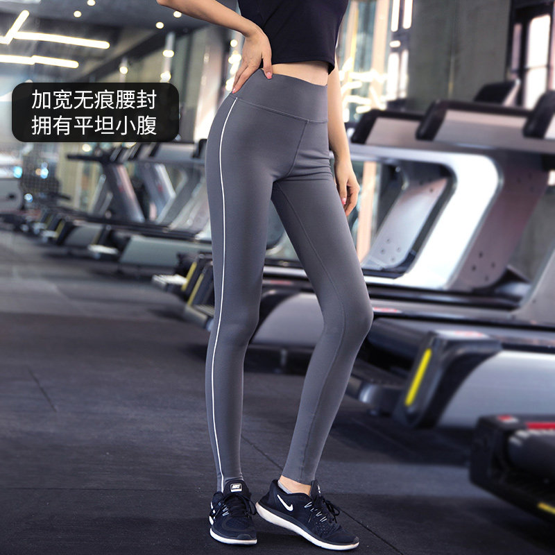 High waist belly tight trousers Women's sports fitness pants Hip high stretch yoga running quick-drying training pants to wear outside