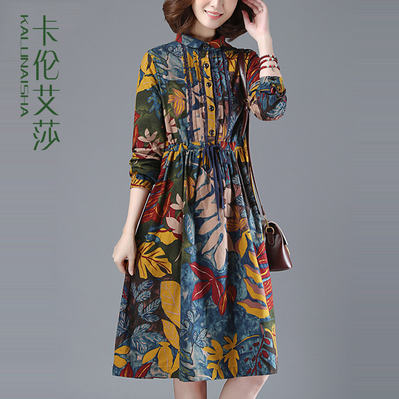 Floral dress women's 2022 spring and autumn Korean version this year's popular temperament, small, waist, thin, long-sleeved skirt