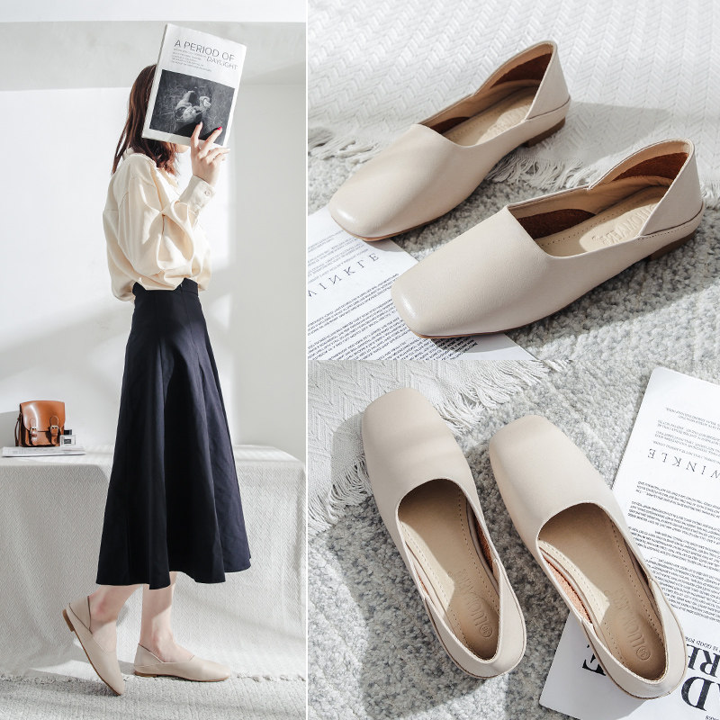 Single shoe woman Summer 2022 new 100 hitch low heel One foot pedal sloth flat Beans Shoes Pregnant Woman Gentle Grandma Shoes
