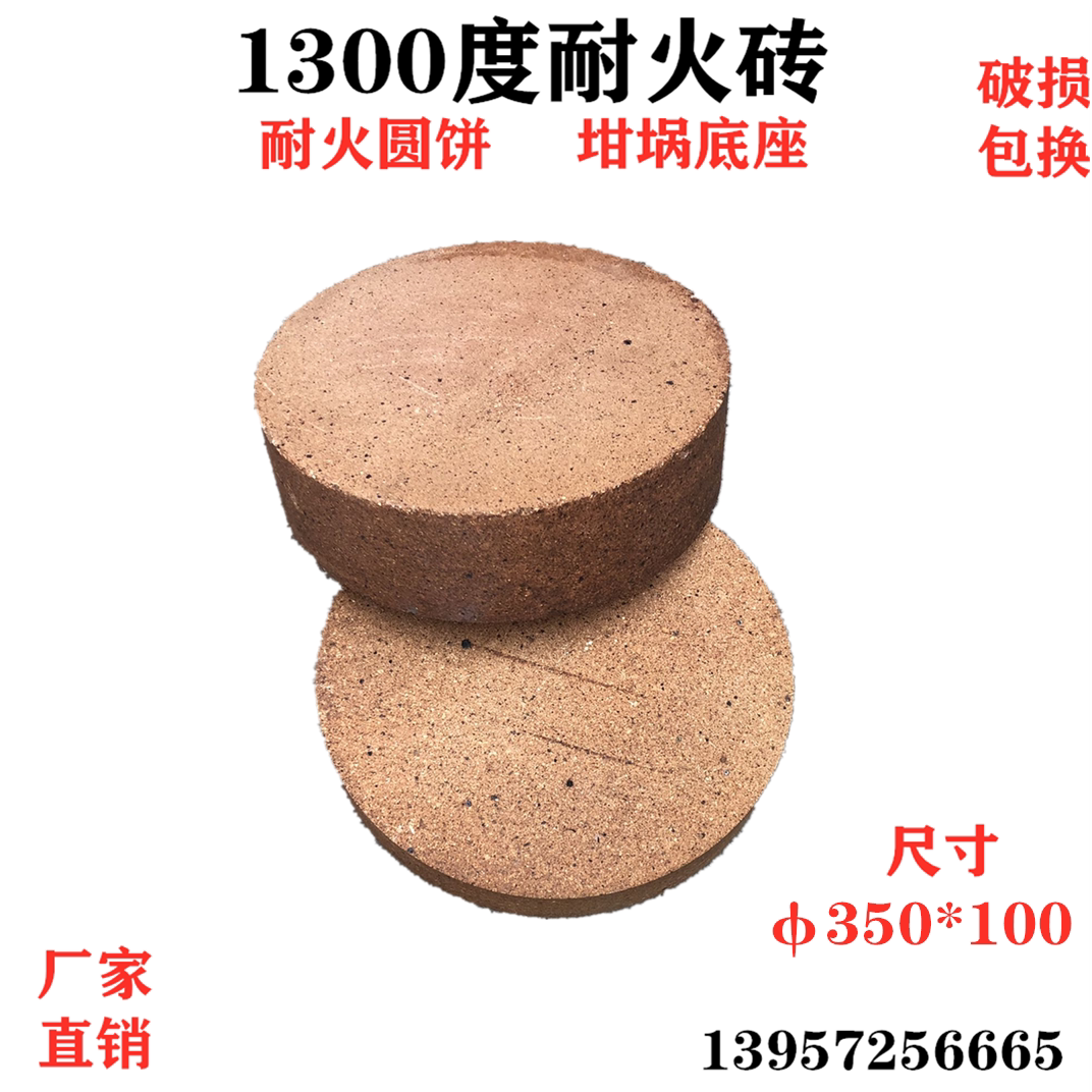 1300-degree refractory brick refractory round cake crucible base melting aluminum furnace base refractory cylinder diameter 350 thickness 100
