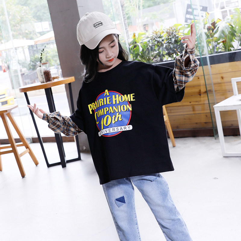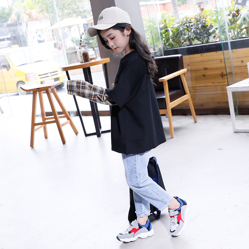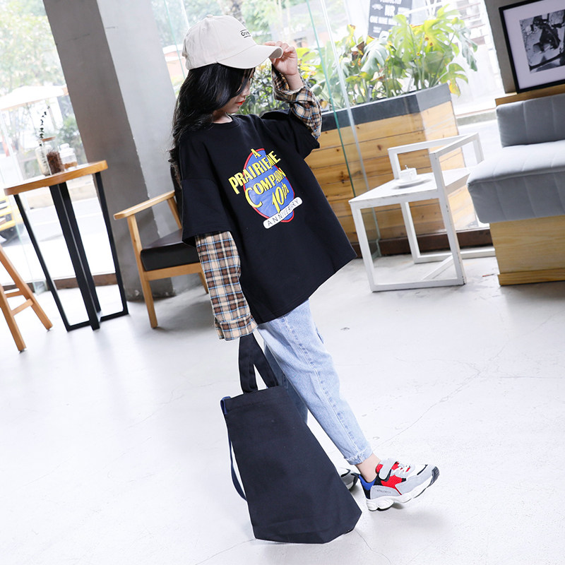 Girls' thick T-shirt 2022 spring and autumn new children's Western style Korean version of the tide big children's spring vacation two T-shirt tops