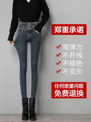 High-waisted jeans women's 2021 autumn and winter new pants plus velvet slim cigarette tube pants Korean version of thin wild pencil pants