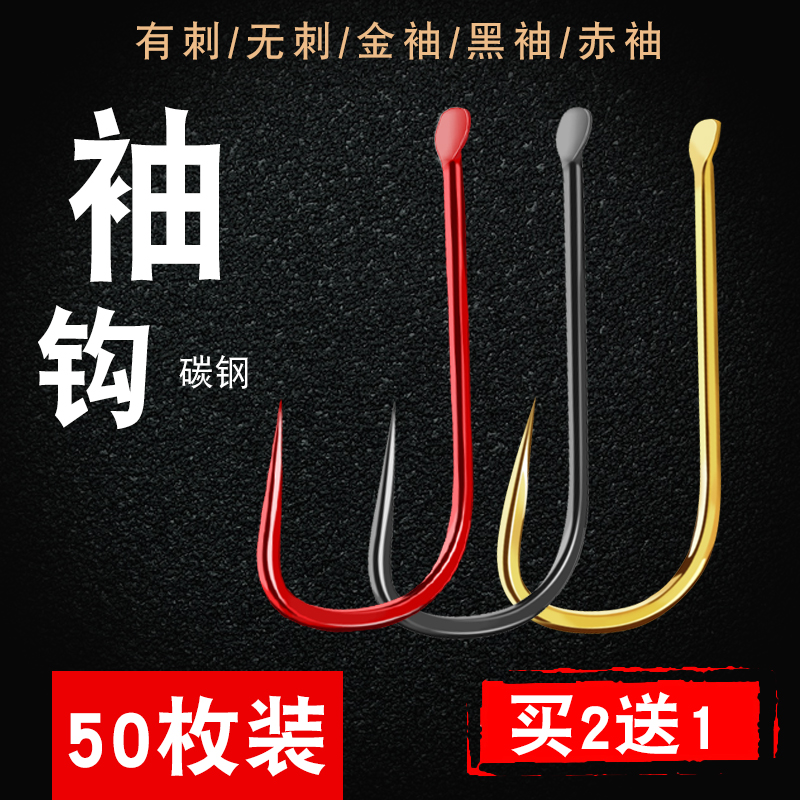 50 pieces gold sleeve Red sleeve Black sleeve hook with thorns without thorns Thin strip long handle white strip Crucian carp special red sleeve fishing hook bulk