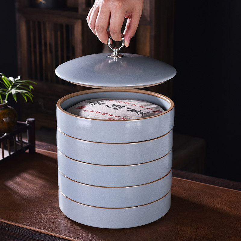 Pu-ji tea cans ceramic large household with cover tea cylinder barrel white Pu-ji tea cake packaging container