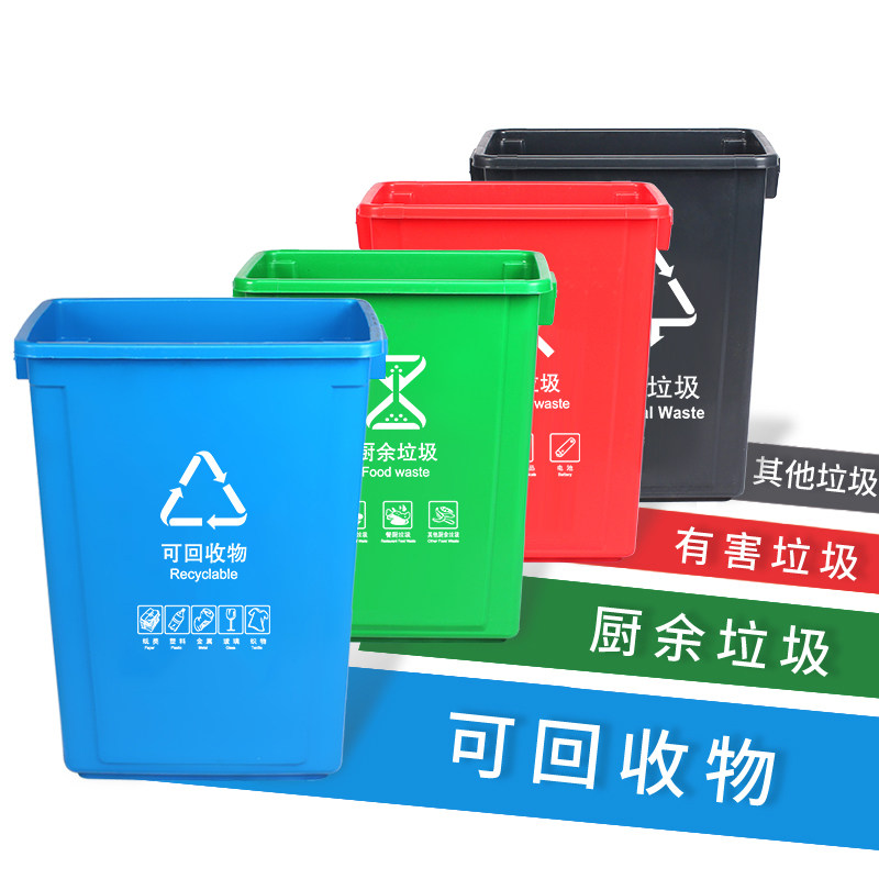Zhejiang No Cover Trash Sorting Trash Can Four Color Shake Cover Sanitation Outdoor Large commercial school Community dustbin