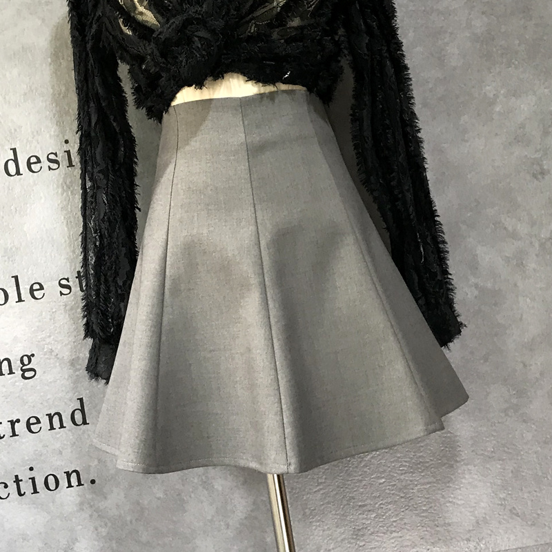 A word thin commuter skirt female spring and autumn new high waist suit material black work umbrella skirt gray skirt