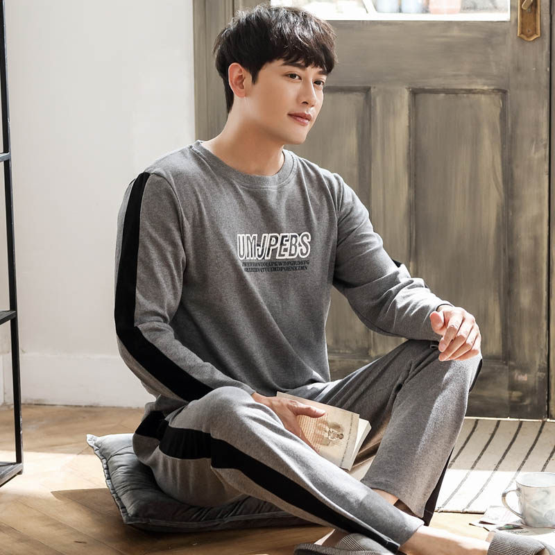 Sleepwear men's spring and autumn pure cotton long sleeves Home clothes All cotton autumn and winter models Enlarge Code Han Edition Suit