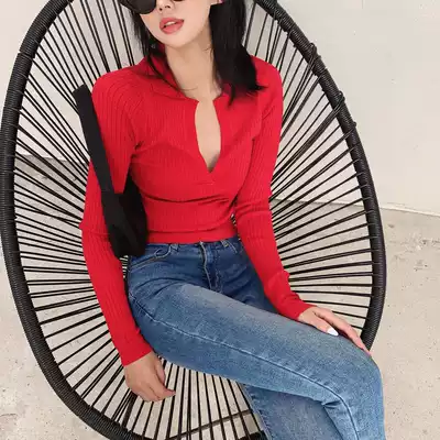LIVIA short polo knitted long-sleeved inner jacket 2021 spring slim V-neck thin temperament outer jacket
