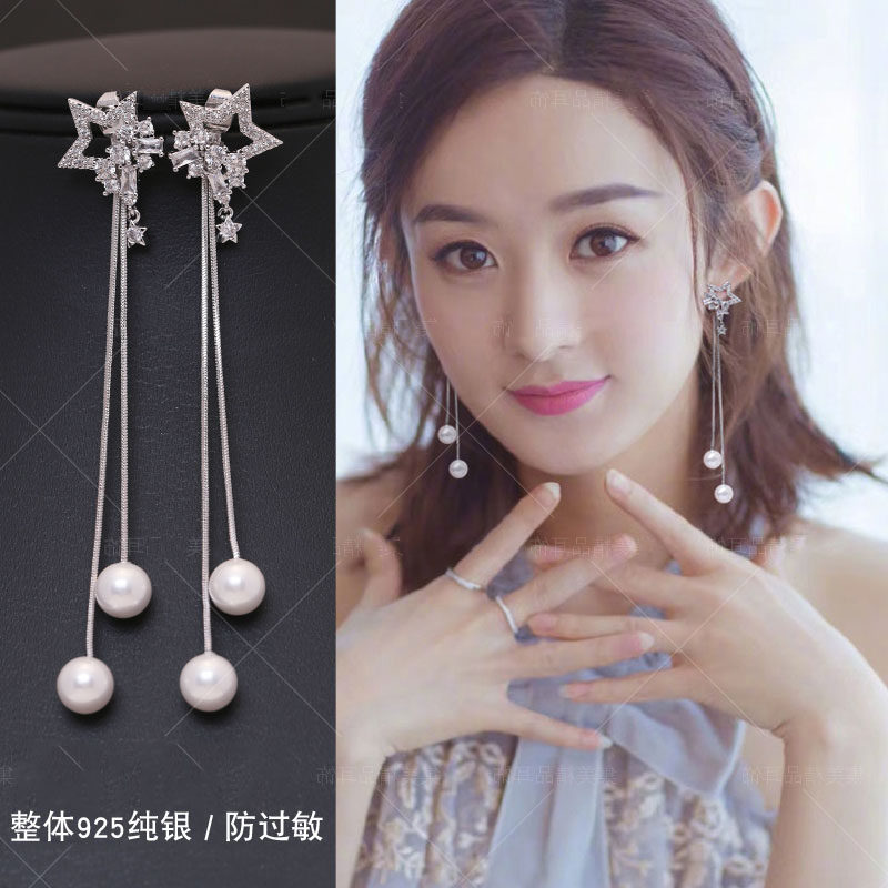 A pair of star tassel earrings, a pair of star tassel earrings, a pair of star tassel earrings for girlfriend, a pair of star tassel pearl earrings, a pair of star tassel pearl earrings, for girlfriend
