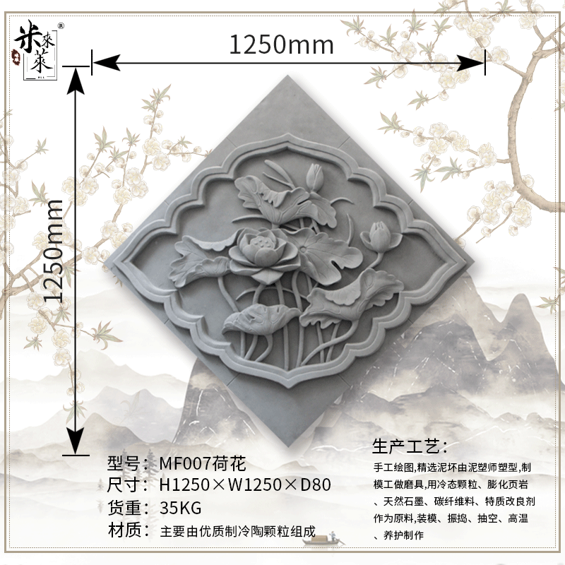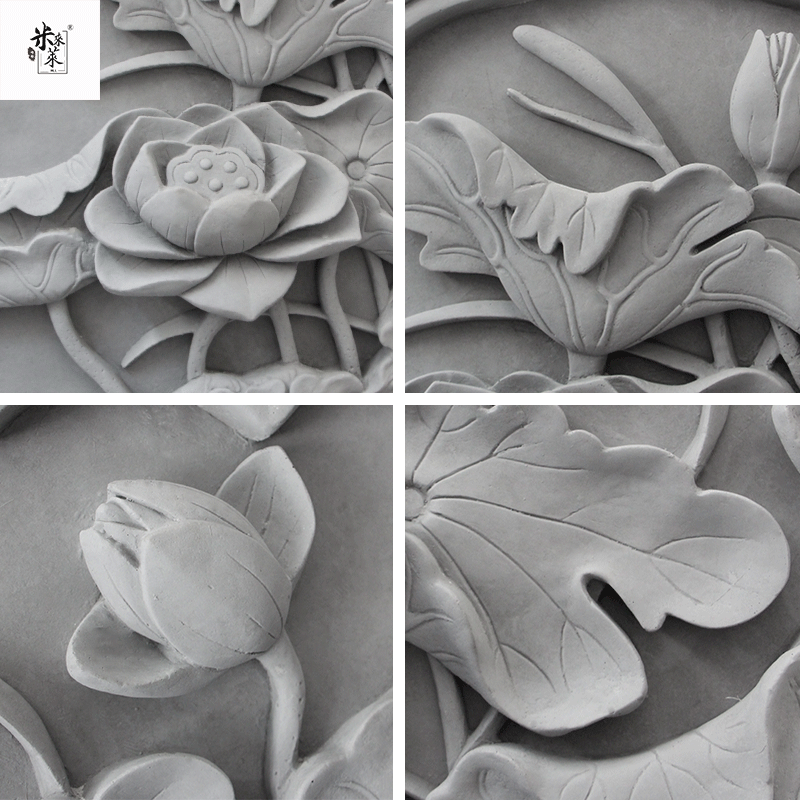 Rhomboid lotus pendant imitation ancient brick carved Chinese style courtyard shadow wall wall relief ancient building photos wall background wall decoration