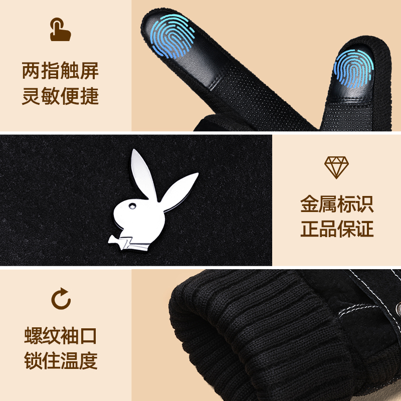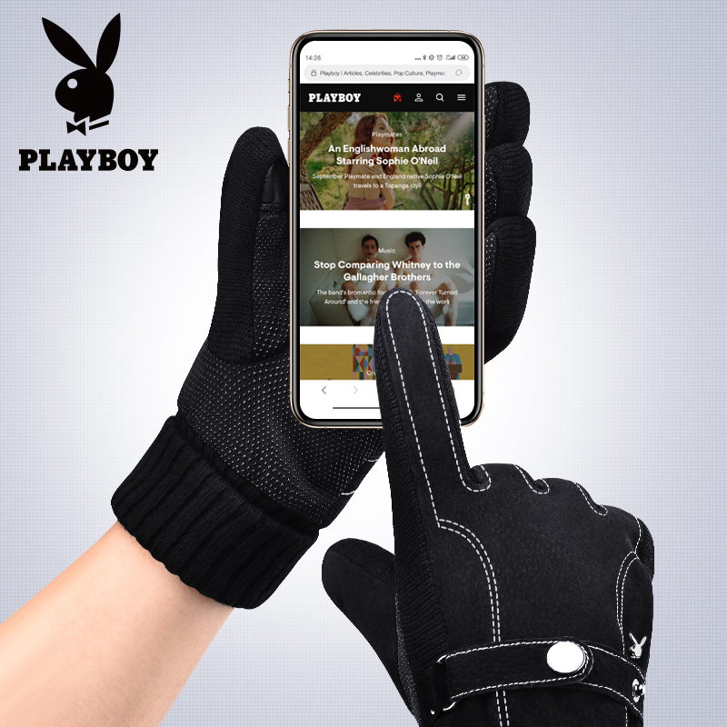 Playboy gloves men's winter cycling plus velvet thick warm tide motorcycle riding windproof touch screen cotton gloves