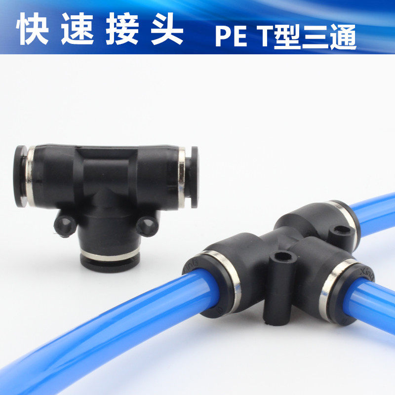 Pneumatic pipe joint plastic fast plug and fast joint T type three-way PE-04 06 08 10 12 14 16