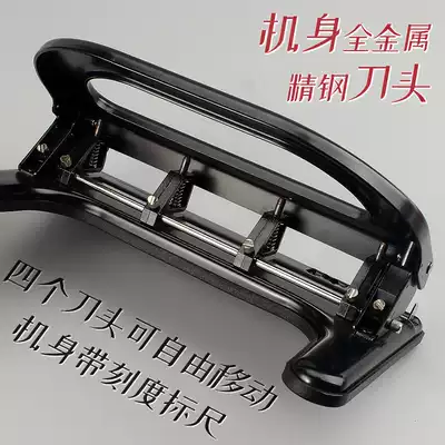 Can get excellent four-hole puncher large number heavy-duty 4-hole punching machine A4 paper file data sheet drilling machine spacing adjustable binding device all metal material labor-saving manual
