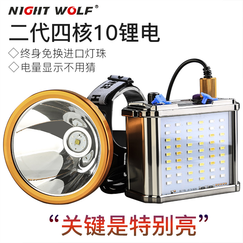 Night Wolves LED headlights Floodlight Charging Headlights Ultra Bright Outdoor Fishing Light Night Fishing Lights Hernia Safety Lamps