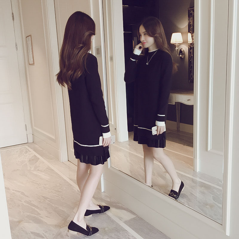Boomer Knit Ocean Dress Woman slim fit 2021 Fall winter new loose little fragrant wind slapped in underskirt for long version