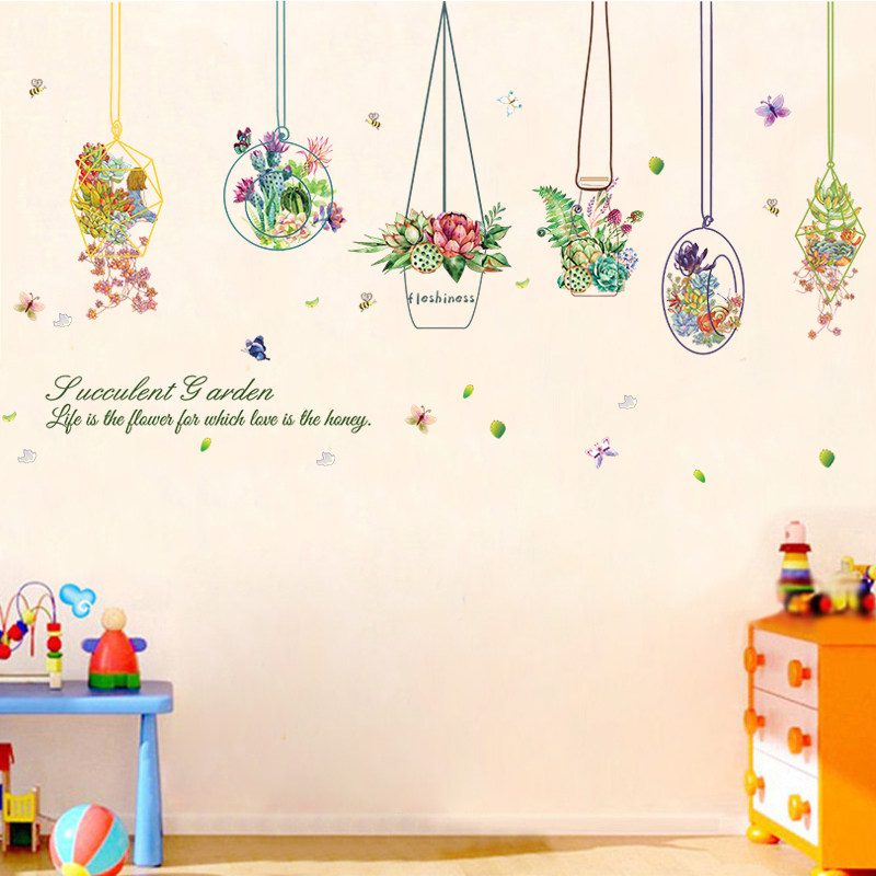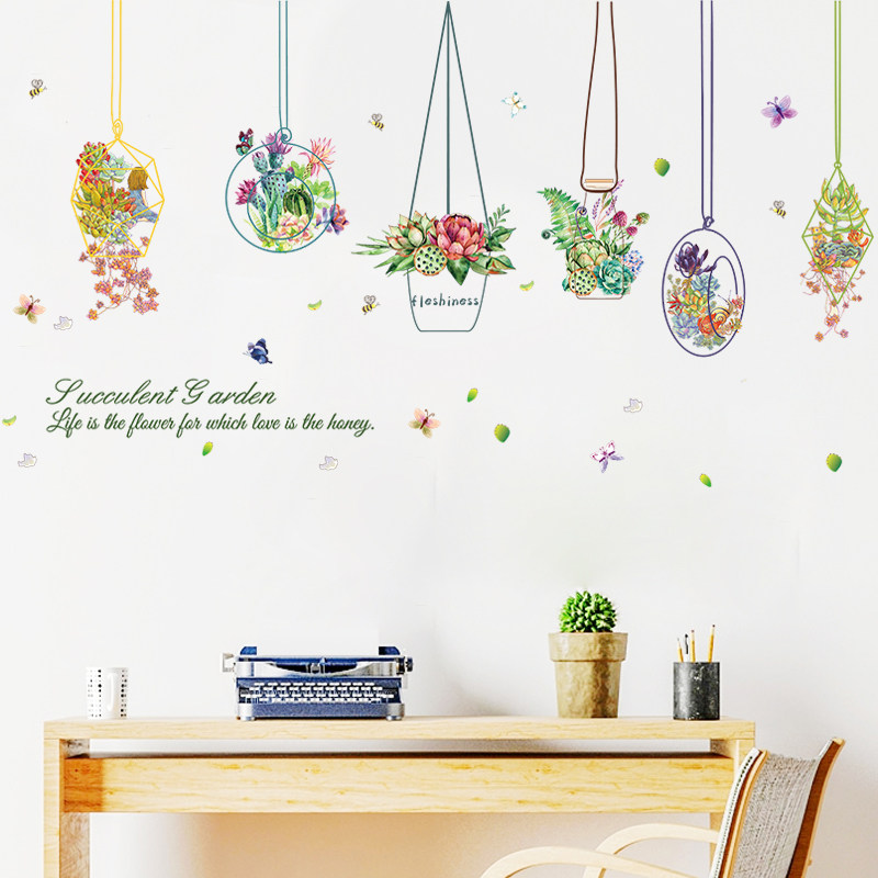 Net red small fresh succulent stickers living room creative wall decoration bedroom bedside wall stickers wallpaper self-adhesive