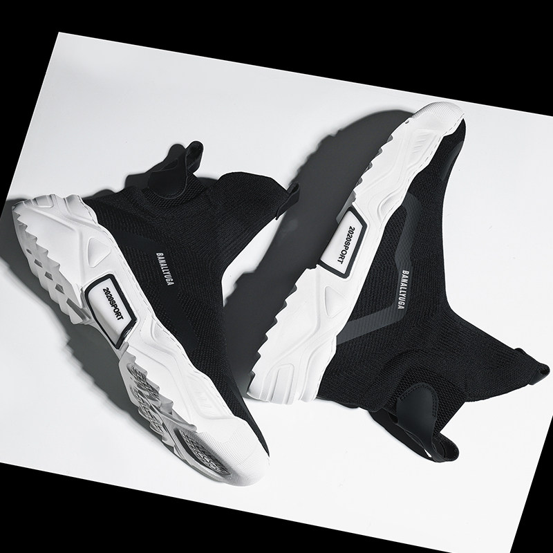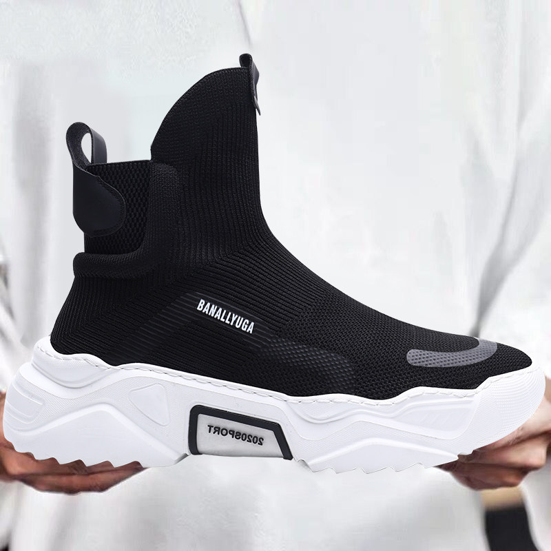 Male Shoes High Cylinder Shoes Trend Net Red Personality European Station Shoes Men Socks Shoes Casual Sneakers Winter Glint