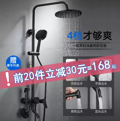 Black shower shower kit household brass body European shower thermostatic faucet shower shower shower set