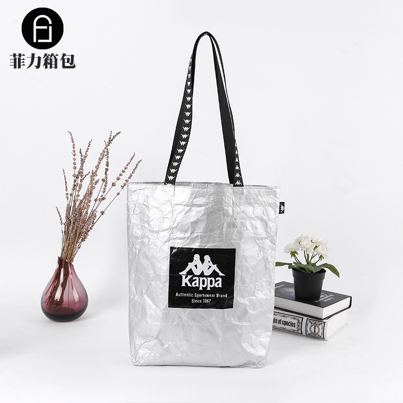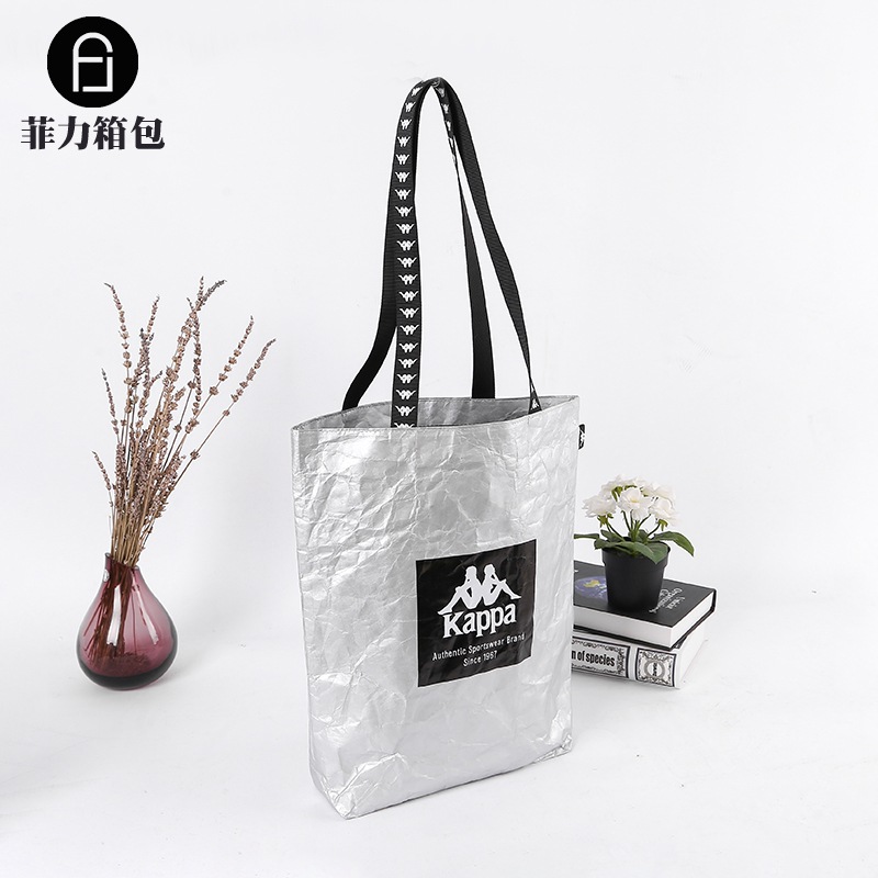 New DuPont Paper Bag Customized Handbag Woman Art Shoulder Large Capacity Simple Shopping Bag printed logo pattern