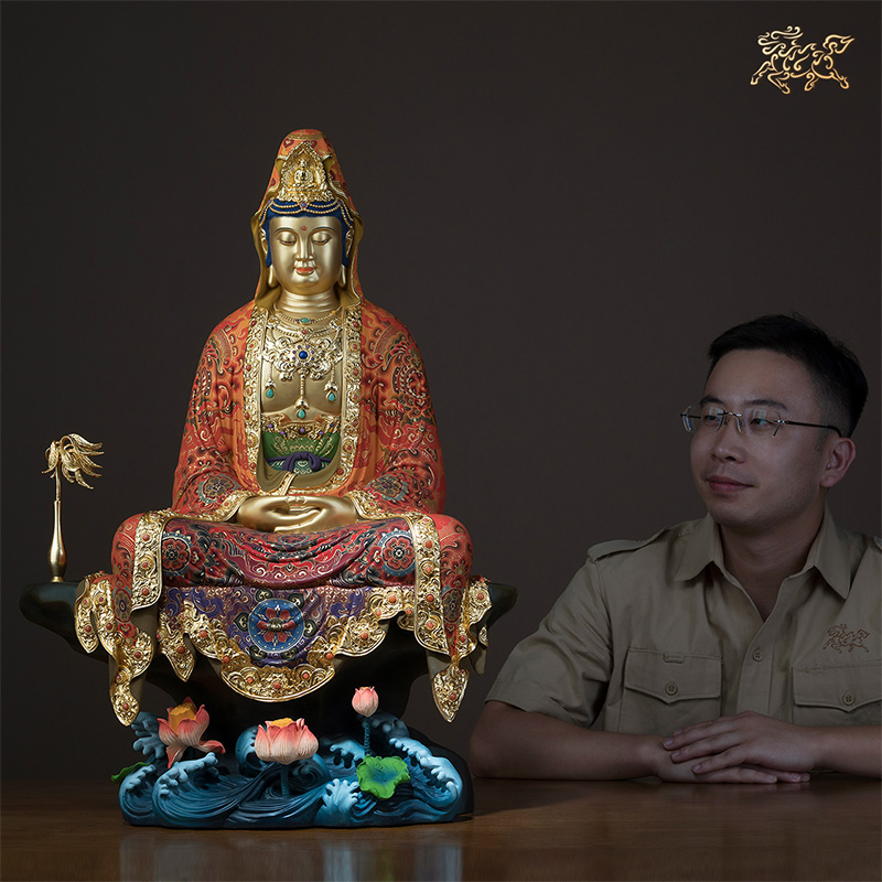 Bronze Master's full copper pendulum piece < View at ease in Guanyin (Painted Large Number) > Home Ornament Buddha Pendulum