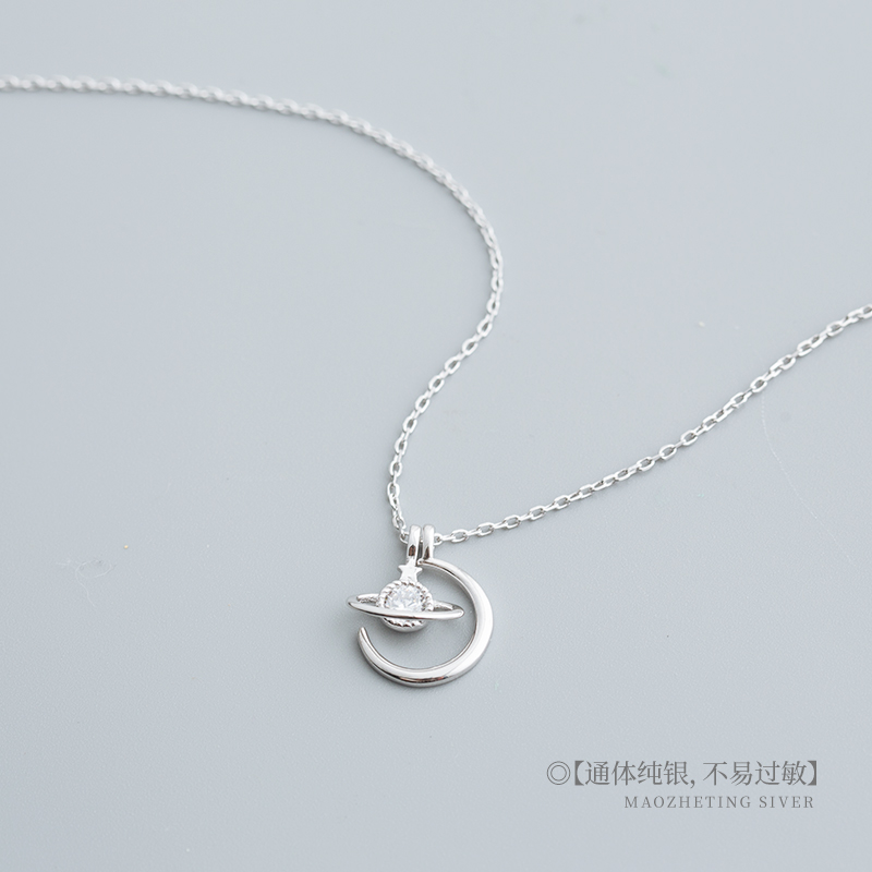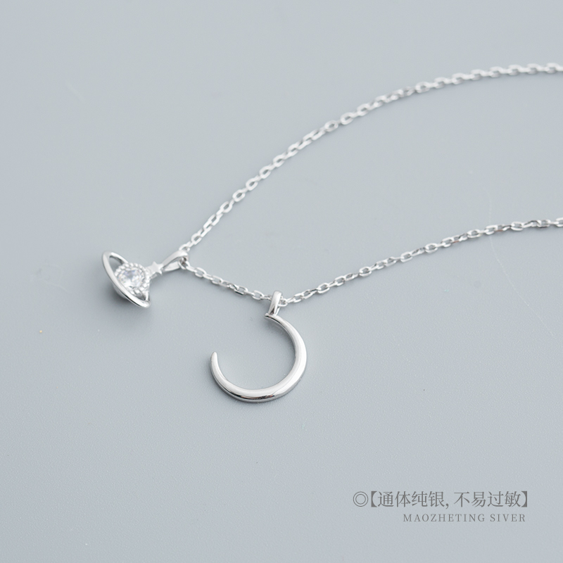Cat Sting Star Moon Guardian Necklace Girls S925 Sterling Silver High-quality Simple Temperament Light Luxury Niche Clavicle Chain
