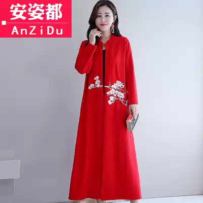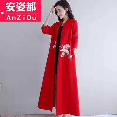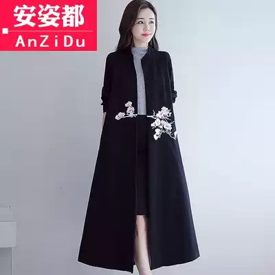 Autumn coat loose cheongsam outside Cardigan autumn Chinese style women's windbreaker women's long knee Chinese coat