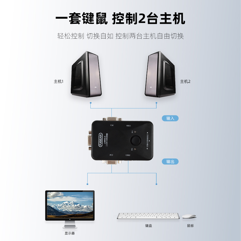 Funger Ingenesis kvm switcher 2 mouth vga two to further two computer monitoring shared keyboard mouse display usb shared-Taobao