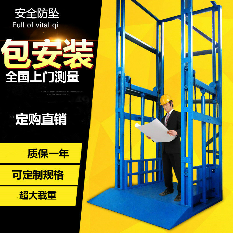 Lift freight ladder hydraulic lift electric anti-fall fixed guide rail type platform simple warehouse plant lifting elevator