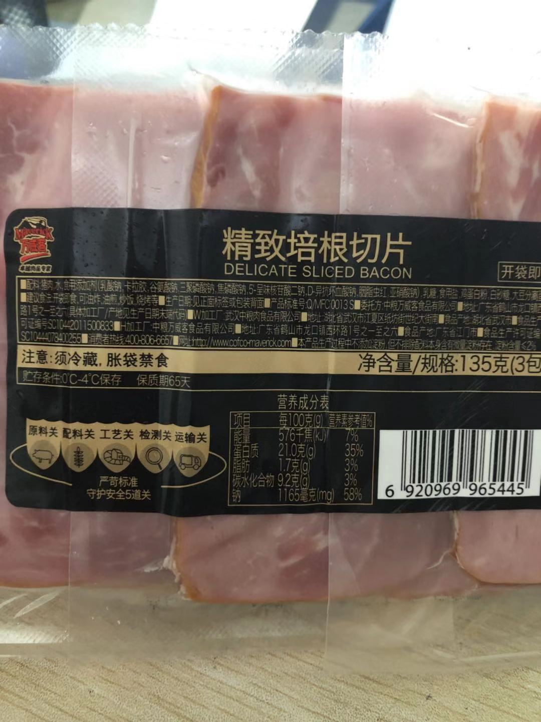 COFCO fine bacon slices open bag ready-to-eat low-fat bacon breakfast pizza starch-free 45g*3 packs of low-fat meat