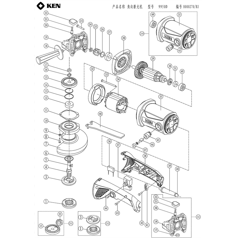 18 Number of side handles 201 Number of gears 19 Number of gearboxes 32 Number of wind shields 34 No. stator 39 Power cord jacket 35 Number of shells 37 Number of cases
