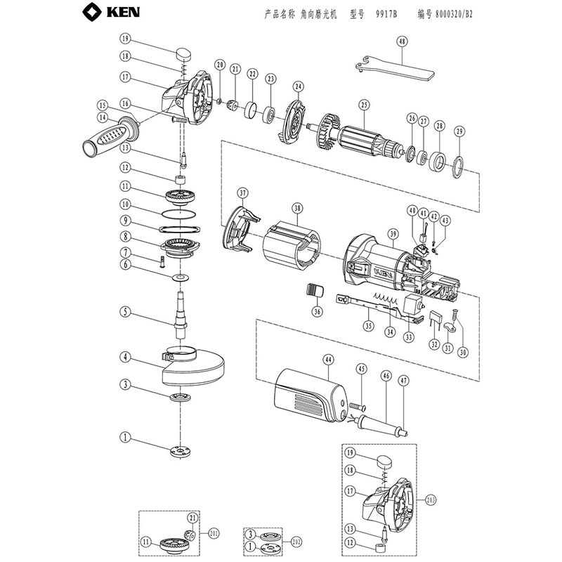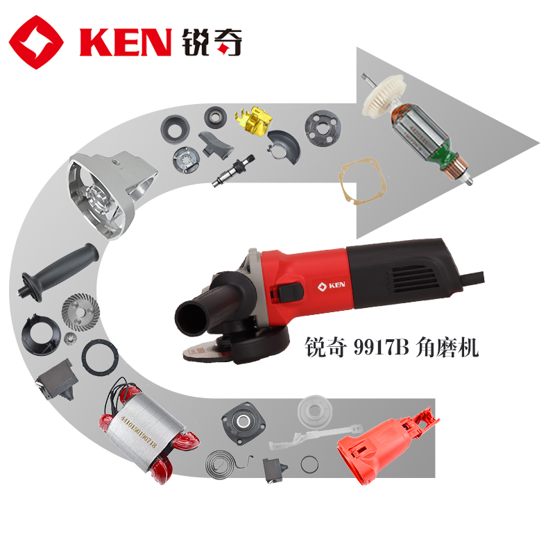 Rich 9917B Angle Grinder Accessories Rotor Stator Brush Case Power Cord Gear Gearbox Wrench