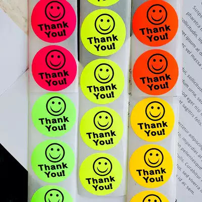 25 stickers ins fluorescent color smile THANK YOU round stickers gift packaging sealing stickers card photo stickers